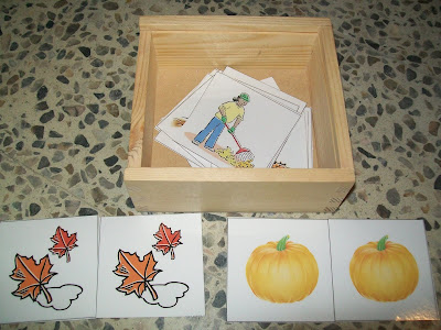 Harvest theme!! I love it!!, we prepared shelves with different montessori works, but all of theme of Harvest or autumn theme... food, colors, everything!!! I adopted this SPECTACULAR idea from Gigi here (Thanks Gigi!!) and I received a Beautiful autumn theme material from Jeannette of Montessori en el Hogar (Thank you!!!).
